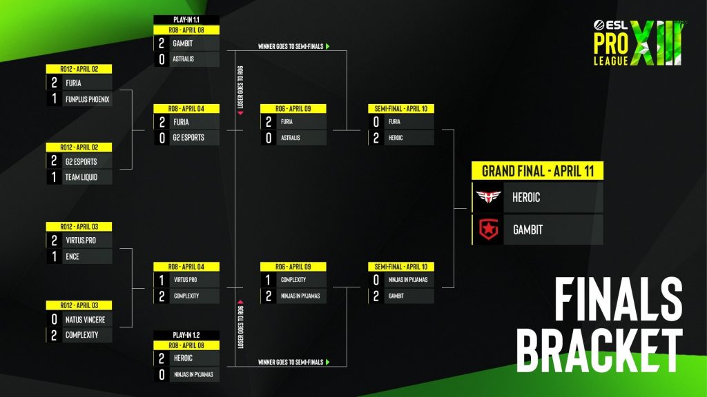 Si algo caracteriza la final de esta ESL Pro League, es que ambos equipos llegan al enfrentamiento sin haber cedido ningún sólo mapa. Heroic superó con un limpio 5-0 el grupo A, donde tuvo que hacer frente a equipos como Complexity Gaming y FunPlus Phoenix, mientras que Gambit repitió la misma gesta en el C ante conjuntos como FURIA Esports, Natus Vincere, MIBR o Cloud9.