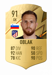 El esloveno tiene el honor de ser el mejor jugador de FIFA 22 en La Liga y también el único portero del juego con una valoración de 91. Un auténtico muro que decide partidos.