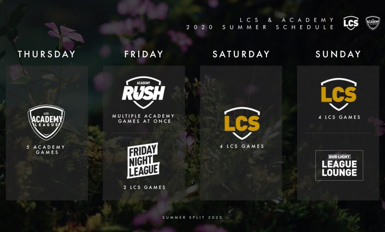 Learn more about the updated 2020 #LCS and Academy Summer Split schedule at: https://t.co/tDY02ioaWB pic.twitter.com/zj3ylmv5h2