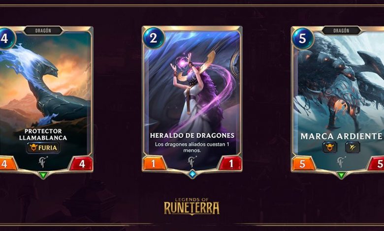 Esta palabra clave estará presente hasta en cinco nuevas cartas que veremos en nuestros mazos y tableros. En ella veremos tres dragones, una carta de acción y solo una de ellas es una unidad.