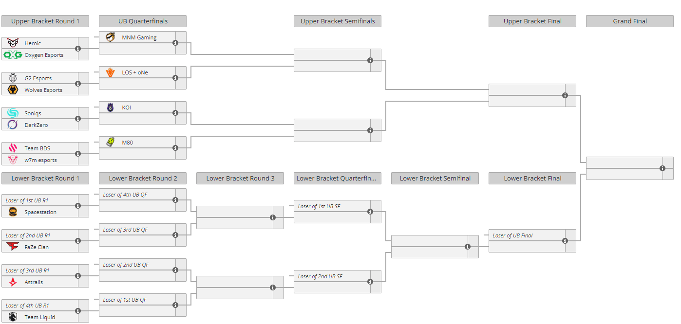 La fase de grupos, que comenzó hace una semana, ha mostrado el nivel de todos los participantes. La organización española lideró el Grupo A después de cosechar tres victorias y una derrota en el overtime. Por otra parte, MNM Gaming, LOS + oNe y M80 quedaron primeros de sus respectivos grupos, por lo que tienen una plaza directa en los cuartos de final. Cada segundo y tercero de grupo disputarán una ronda previa mientras que los quintos clasificados empiezan directamente desde el lower bracket. De esta primera fase tan solo el último de cada grupo se ha quedado fuera de los playoffs.