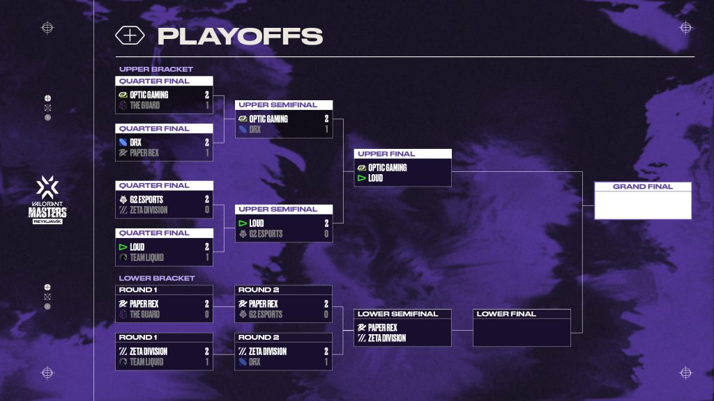 Como comentábamos anteriormente, el torneo tiene por el momento dos enfrentamientos asegurados como son LOUD vs OpTic Gaming (22 de abril, 19:00) y ZETA DIVISION vs Paper Rex (22 de abril, 22:00). Tras estas dos series y conocer quiénes serán los respectivos eliminados y clasificados, comienzan las dos series definitivas y únicas del torneo al mejor de 5. Lower Bracket Final (23 de abril, 19:00) y Grand Final (24 de abril, 19:00). Solo unos días más para conocer qué equipo se unirá a la lista de conjuntos vencedores de un torneo internacional en Valorant.