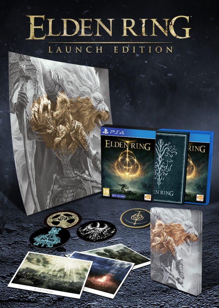 - Juego: Disco de juego físico de ELDEN RING (excepto en PC, donde será un código de descarga), disponible en Xbox Series X/S-Xbox One, PlayStation 5 y PlayStation 4 y Pc Download.